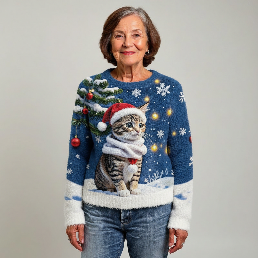 Casual Flannel T-Shirt with Retro Animal Art for Women