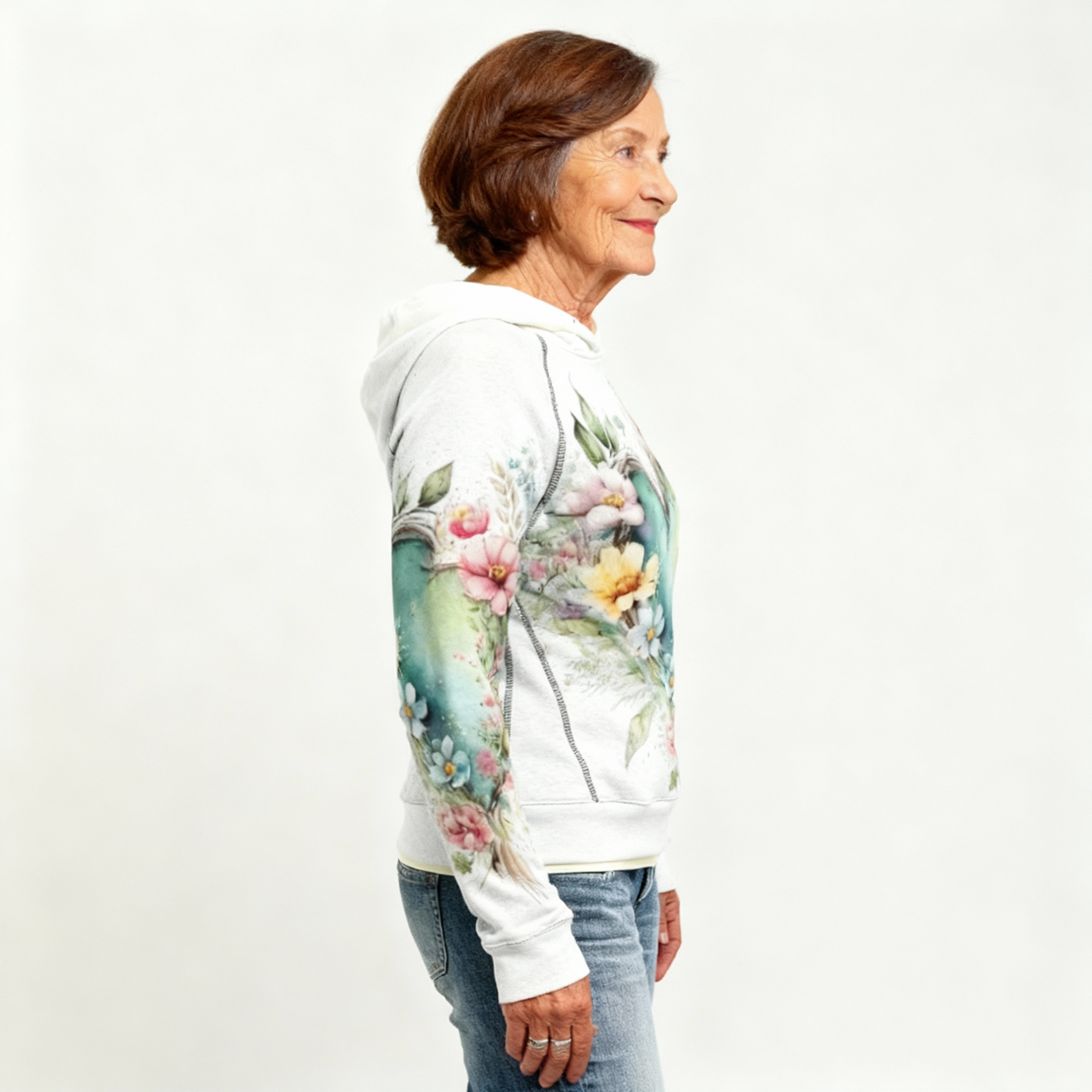 This knit doesn’t itch or irritate, thanks to a soft, breathable blend that feels gentle against your skin. It keeps you warm without overheating, ideal for the changing autumn weather. The material holds its shape, so no sagging or stretching after a few wears. The colorful, Scandinavian-inspired pattern adds a playful yet stylish touch to any outfit. Dress it down with jeans or shorts, or elevate it with a skirt and boots. The hoodie adds both extra warmth and a laid-back vibe.