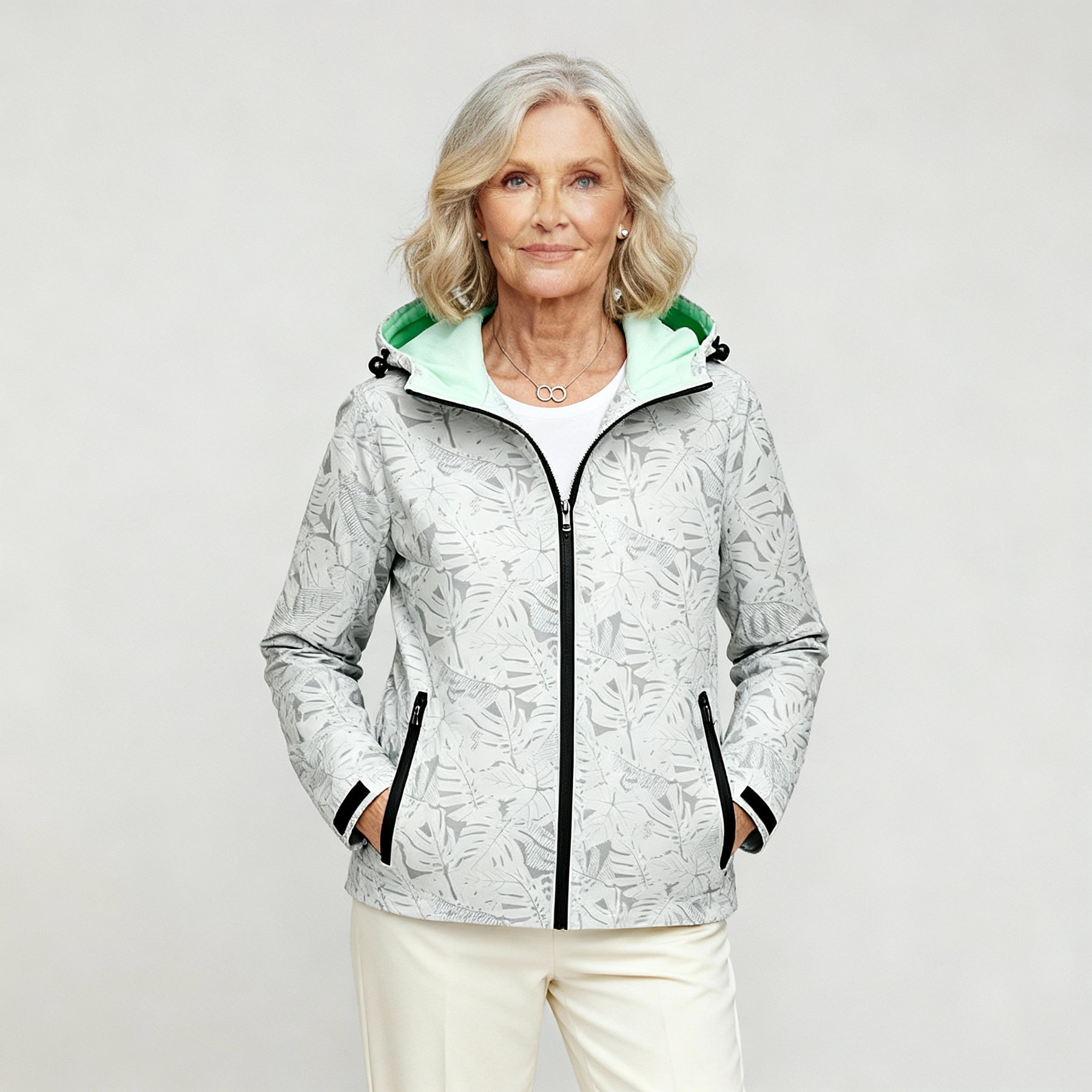Stay cool, comfortable, and effortlessly stylish with this lightweight summer jacket. Designed for everyday adventures and outdoor escapes, it offers practical features with a feminine silhouette. The subtle leaf pattern adds a natural charm, while details like the removable hood and adjustable cuffs make it adaptable to changing weather.